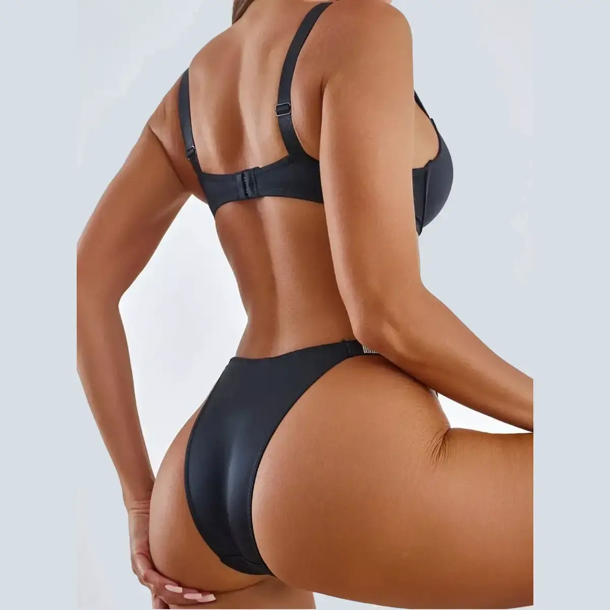 Victoria's Secret Shine Strap - BLACK BRA + BRIEF SET - Classic Satin lingerie